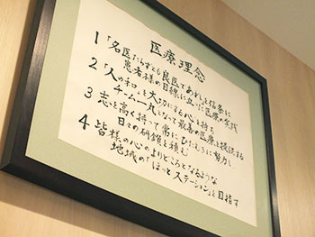 良質な医療を提供させていただくには到底一人の力ではできません。スタッフ同士はもちろんのこと、我々と患者様・ご家族との間に「和」を構築することが大切であると考えます。